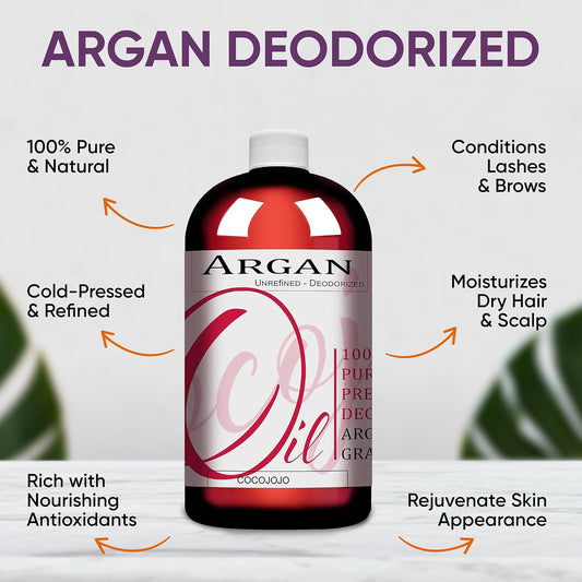 Pure Argan Oil Deodorized Unrefined Cold Pressed, 32 Fluid Ounce