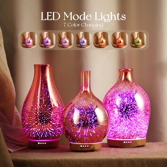 Rose Gold Essential Oil Diffuser 3D Glass Aromatherapy Ultrasonic Humidifier, Waterless Auto-Off, Timer Setting, BPA Free, Air Refresh for Home Hotel Yoga Leisure SPA Gift 100Ml